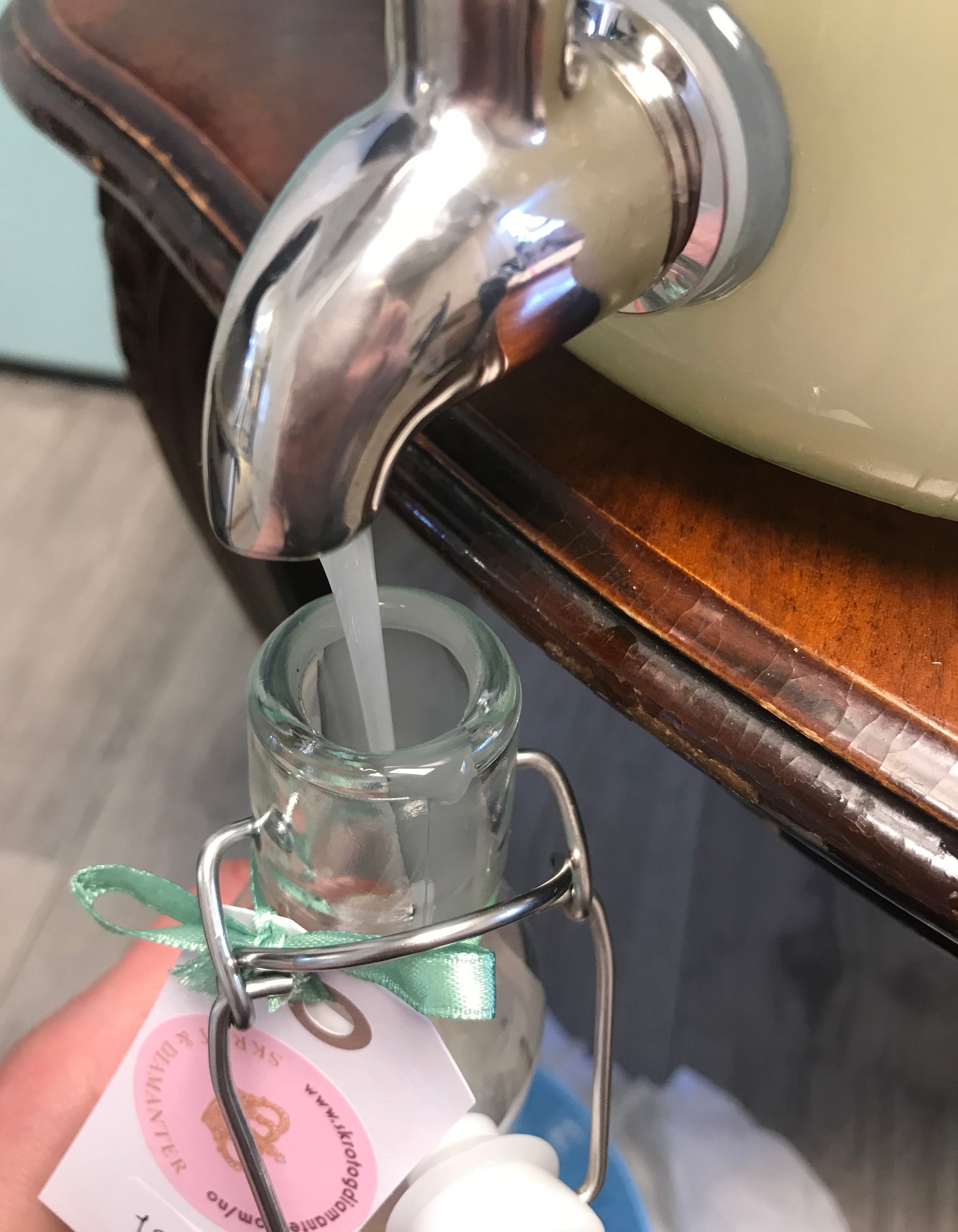 Fyll glasset over i såpedispenseren din hjemme.